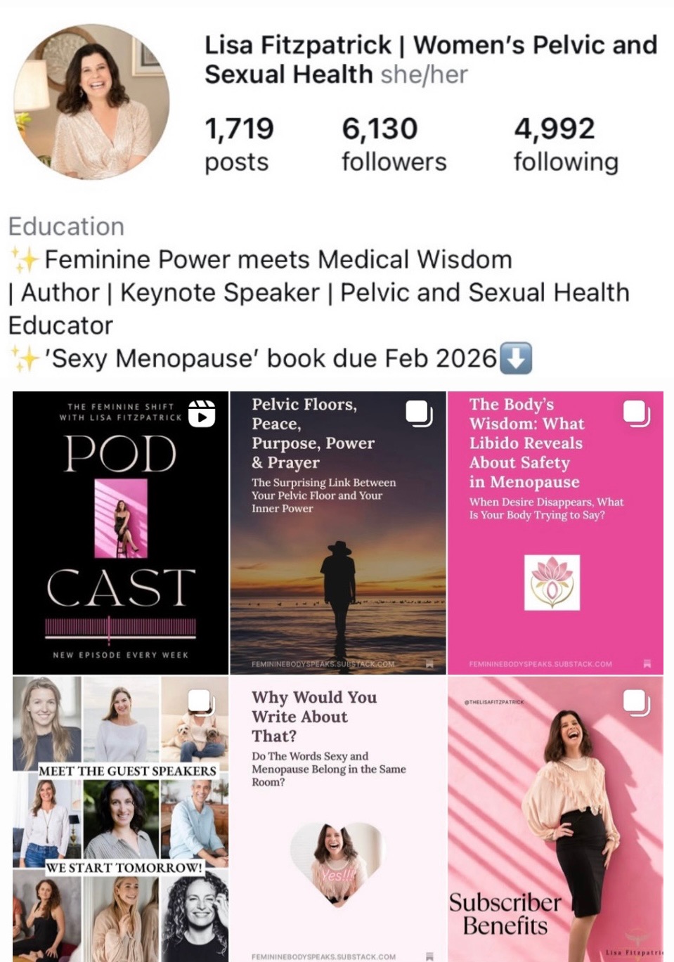 This led to her rebranding as a Pelvic and Sexual Health Educator and becoming the author of a work-in-progress book, Sexy Menopause, due for release in early 2026.
